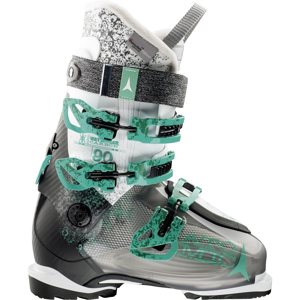 Der Atomic Waymaker 90 für Frauen bietet eine gute Balance zwischen Steifheit und Komfort. Die letzte Breite und die Live Fit-Zone machen diesen Schuh ideal für einen breiteren Fuß. Die Gehposition bietet Komfort beim Wandern oder Gehen zum Lift.